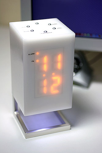 携帯電話で いーじゃないなんていわないで目覚ましだけじゃないっすMacの機能で 時計表示が大きくできなくなったから 買いました。ま それに部屋に時計がないのでかといって 壁掛けはできないマンションなので光るやつかってきましたちゃちいけどMacっぽさは あるかなと