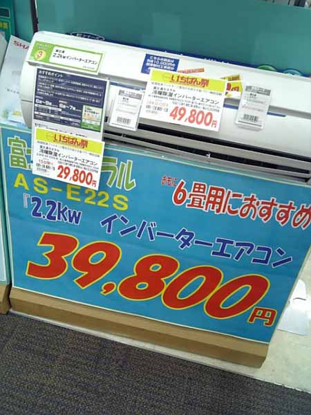 実はリビングにしかエアコンがない・・・そこで!夏の安いエアコンセールを狙って購入計画!39800円+10000円工事であるよって話を聞いて早速DCHへっと(ΦдΦ;)!!29800円になってる!!即購入でした。これで快適ワークです♪