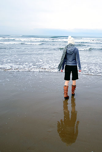冬の石川も雪は無く ただ 寒い日本海からの風にふかれる千里浜。 荒れた海には鳥はいなく ただ波だけが さわいでいました。