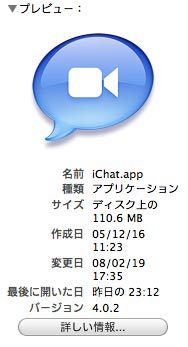 何年ぶりだろうか iChatやってみた。音質はスカイプより下であるが映像機能がすばらしかった。なによりパソコンに入っているムービーをそのまま共有でみれるのが一番だった。写真共有はなんとなくわかってたけれど 実際やってみると凄い便利でよかった。iChataol .macアカウント ないとだめらしいんだけどね誰か一緒にやりません?