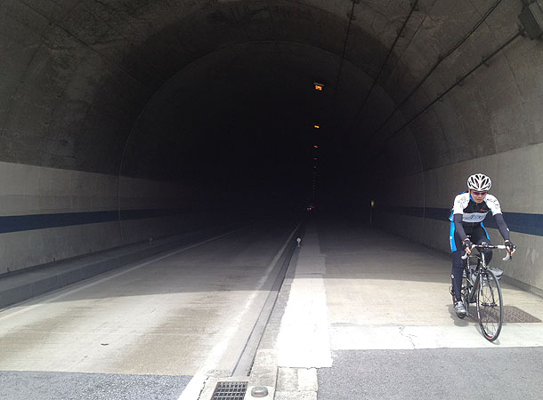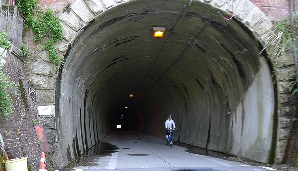 30km走行後のこの坂も ママチャリであっても なんとかのぼりきって涼しいが埃っぽいトンネル。