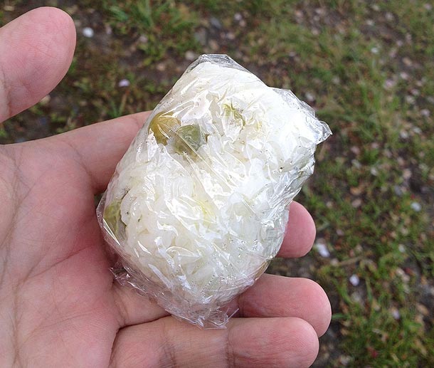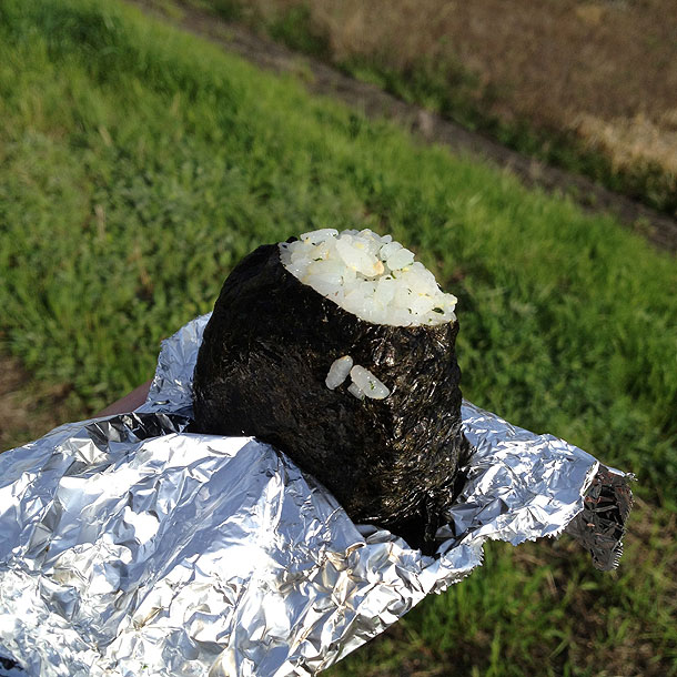昨日の残りのご飯。まめごはんを おにぎりにしてみました。