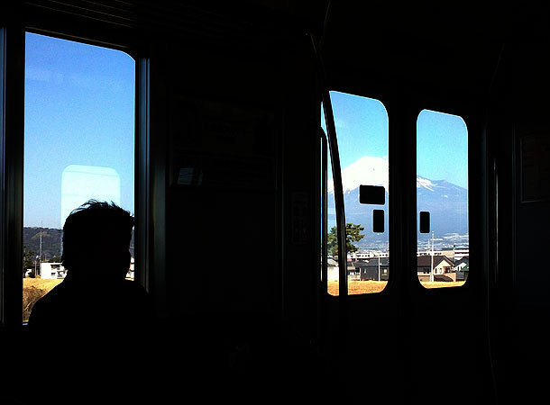 この写真の左の小さい白い部分は富士山の頂上の雪。