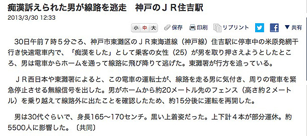 ちなみに、最初の人が侵入した件とは 別で 痴漢が線路内に逃げた事件も ありまして