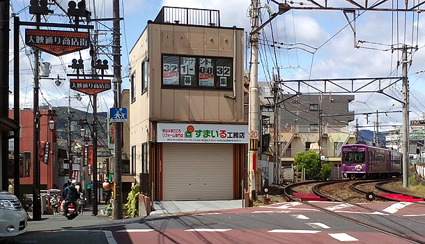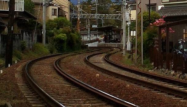 路地をねりあるきながら いつもの嵐電線路をみる。
