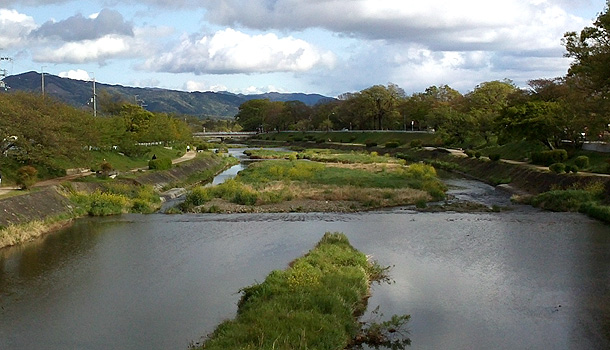 鴨川がきれいに新緑してます。