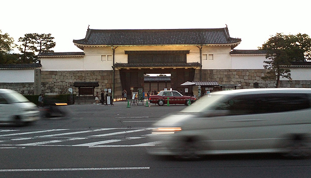 二条城前。ライトアップしてるんだな。