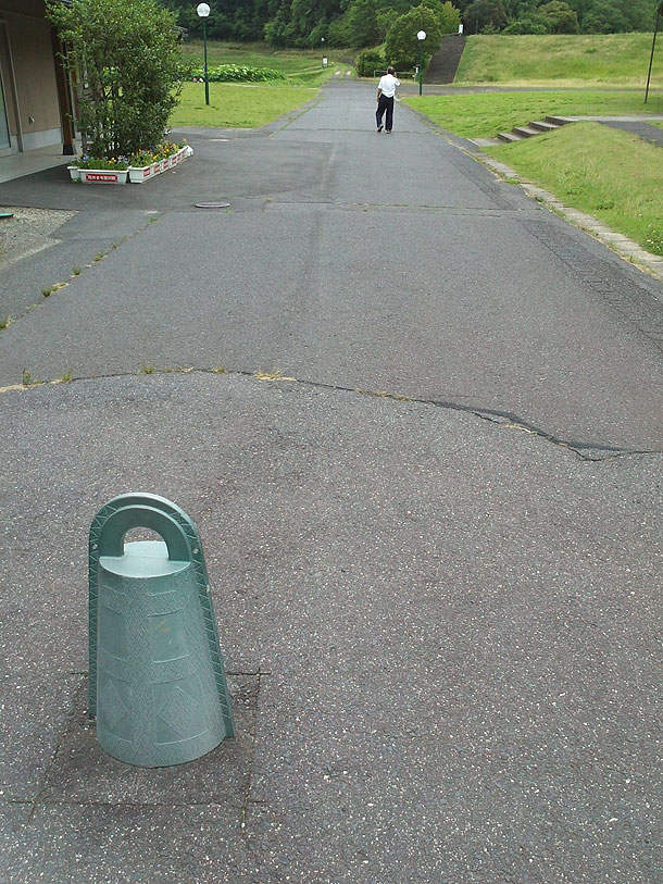 遺跡駐車場から入口へ入るところには 銅鐸がおいてあります。w
