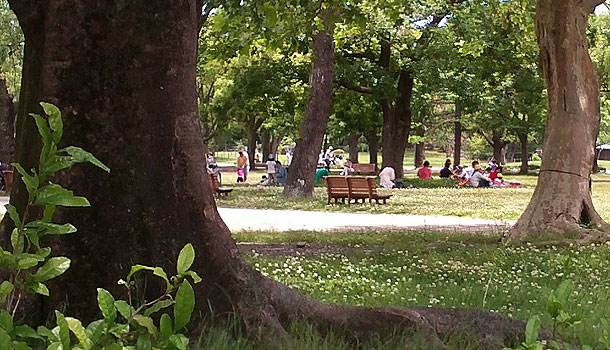 跡地の公園は 家族連れが お弁当ひろげてました。