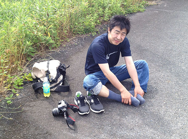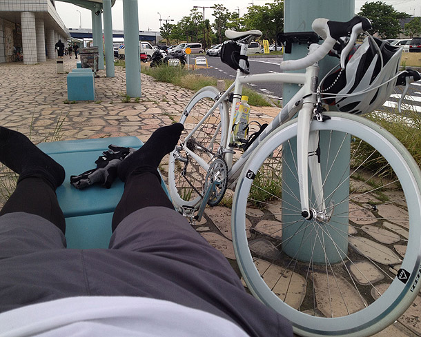 1時間おきの休憩をきめていたので よくわからない場所で 地べたに寝転がる。