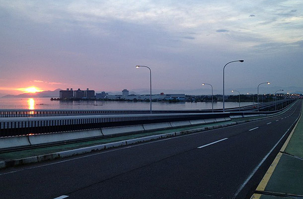 いつも 車でビューンっと走っている 湖西道路の現在の入り口に到着。