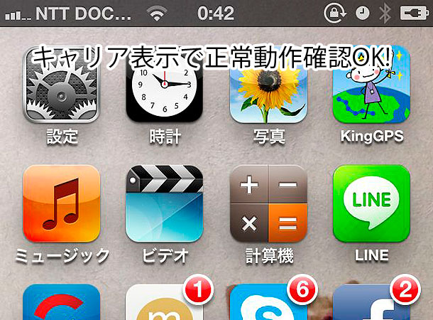 キャリア表示が JP DOCOMO で 輝く 我がiPhone。(実際の契約もドコモです)