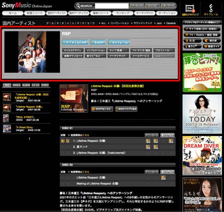 今回はSONY MUSICのHPに目を向けてみた。