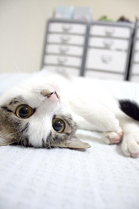 猫の瞳は夜のほうがまん丸でかわいいですね。 それとピンクの肉球も・・・。