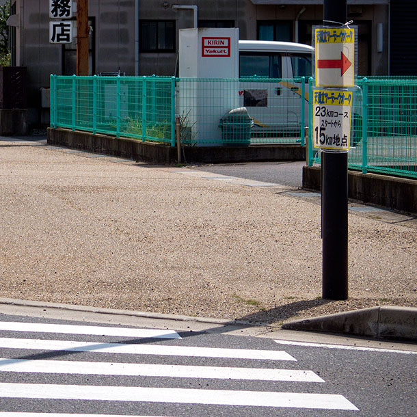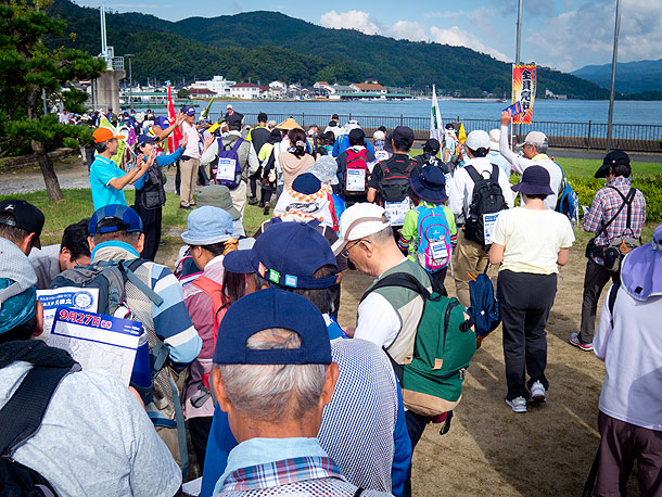 旗をもってスタスタ歩いていく加古川のツーデーウォーク関係者。