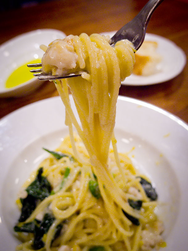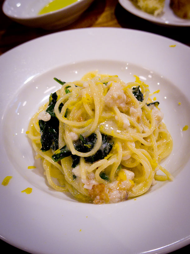 パスタは雲子とホウレン草のスパゲティーニ 黄柚子の香り
